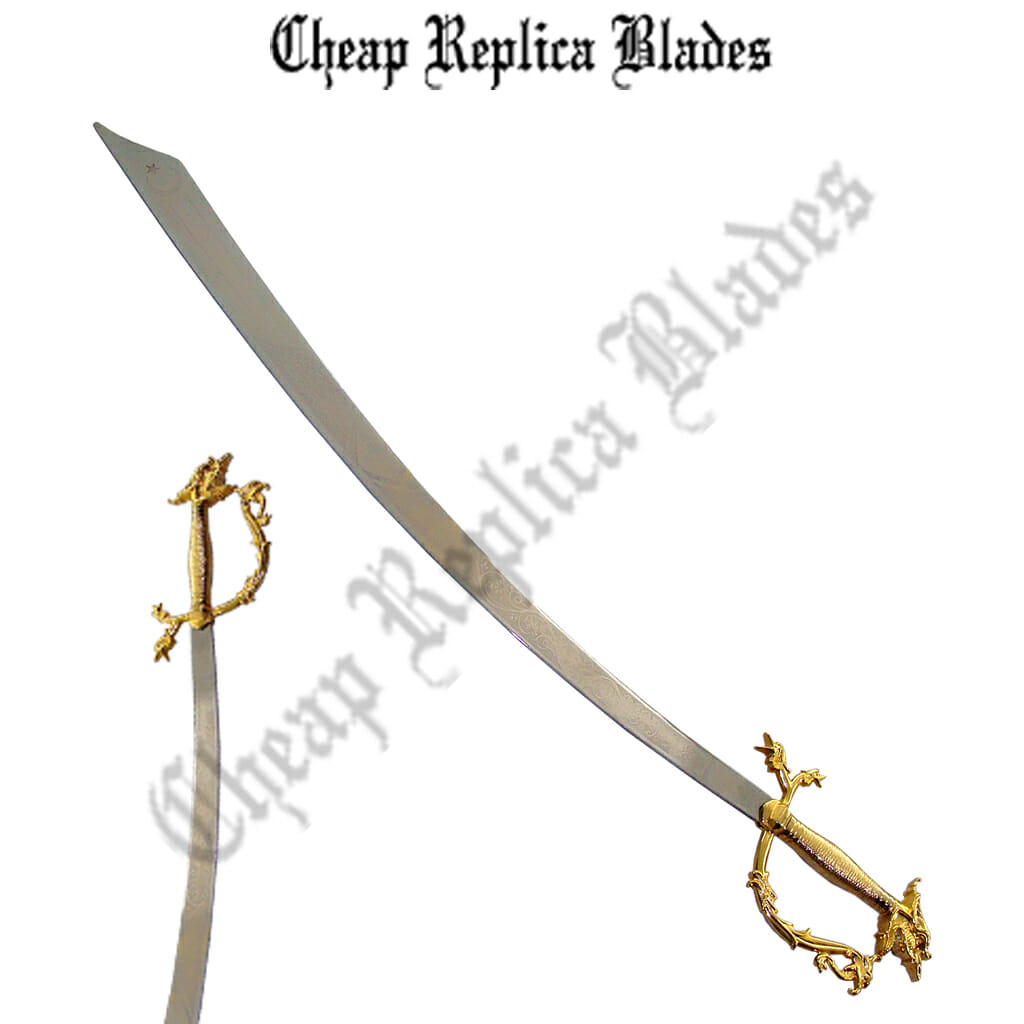 Dragon Head Scimitar Sword with Gold Plated Handle