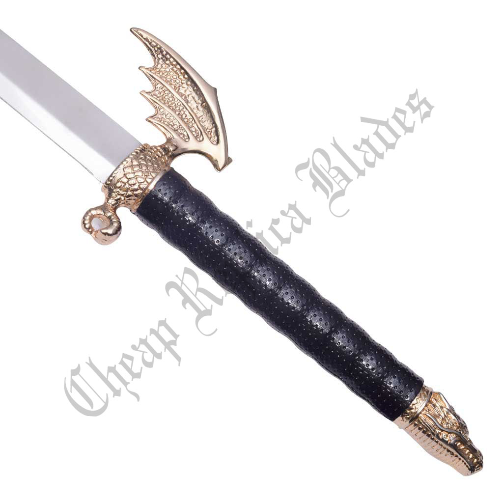 Solid cast metal guard and hilt. Gold plated. Full Tang
