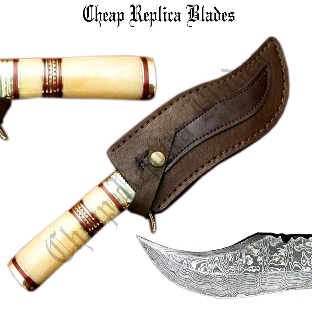 Damascus Custom Knife Camel Bone
