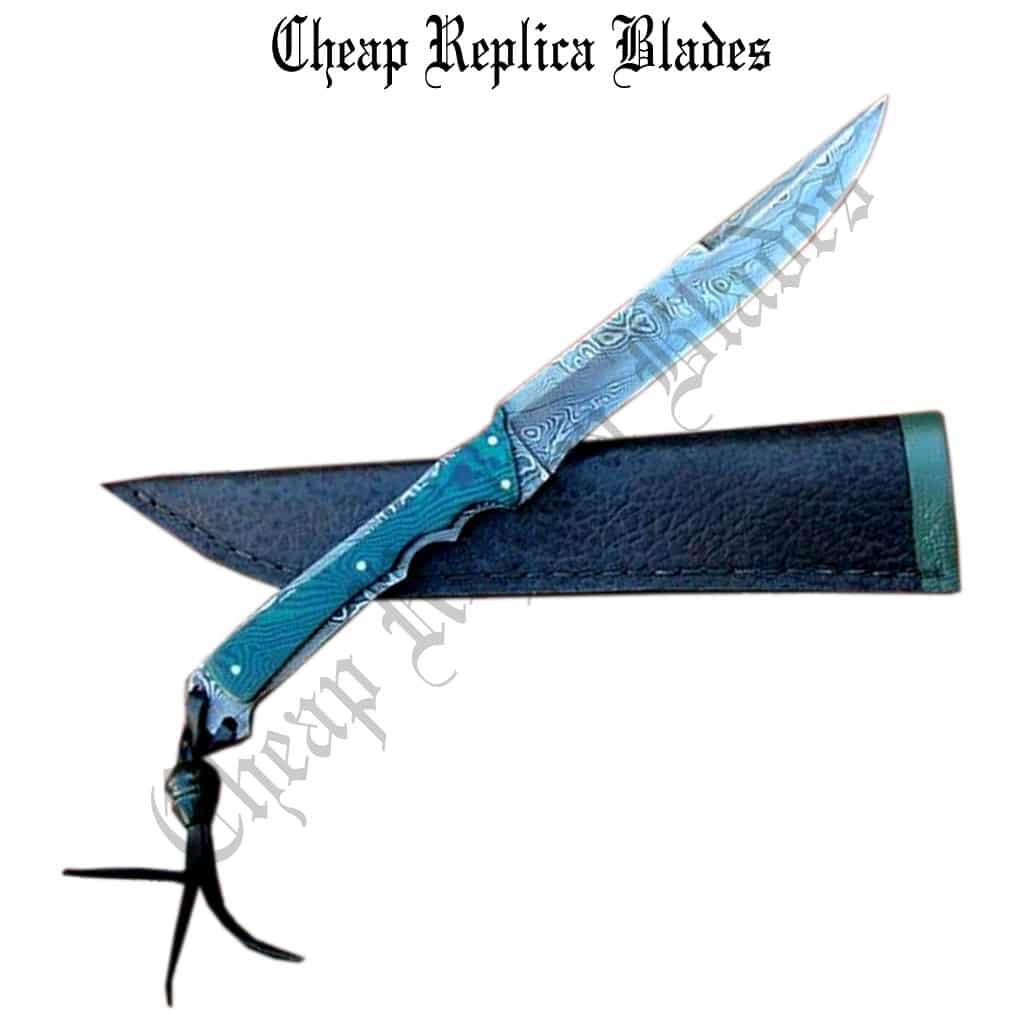 This fantastic knife with its excellent finish and dashing looks it also got a rock solid construction. Its wonderful blade is the result of hours and hours of hammer forging. The shape and the whole geometry are simply awesome. Blade of this knife was hand forged with carbon steel layers forged into an excellent pattern. Blade is hand grinned on both sides. Fantastic handle is made of a micarta brass rivets to make master piece of a kind. This knife is completed with a hand sewn high quality leather sheath. It is custom made especially for this knife, Hand sewn to provide perfect fit and finish for this specific knife. This sheath can also be worn on belt.