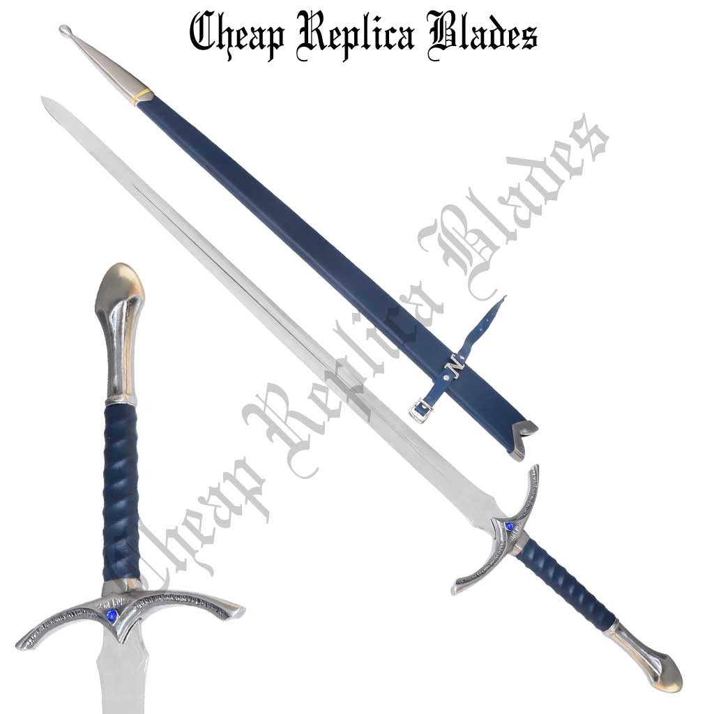 Handle Material: Solid metal cross guard and pommel with antiqued metal finish and engraved Elven Runes. leather-wrapped hand grip.
